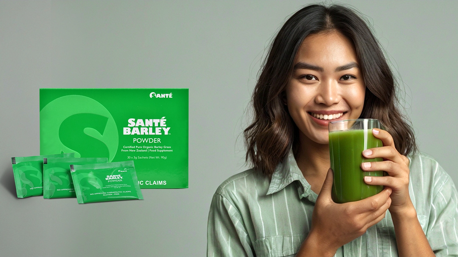 From farming to production to finished products, Santé’s entire process is BioGro-certified, meeting strict international criteria for organic quality in every barley grass powder scoop or capsule.